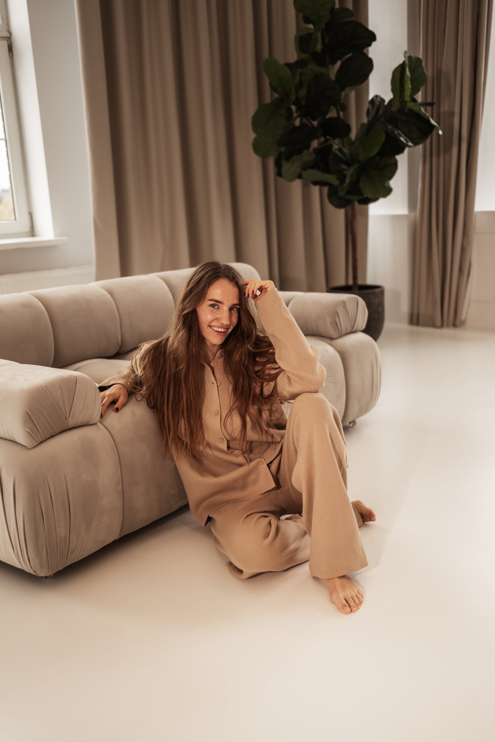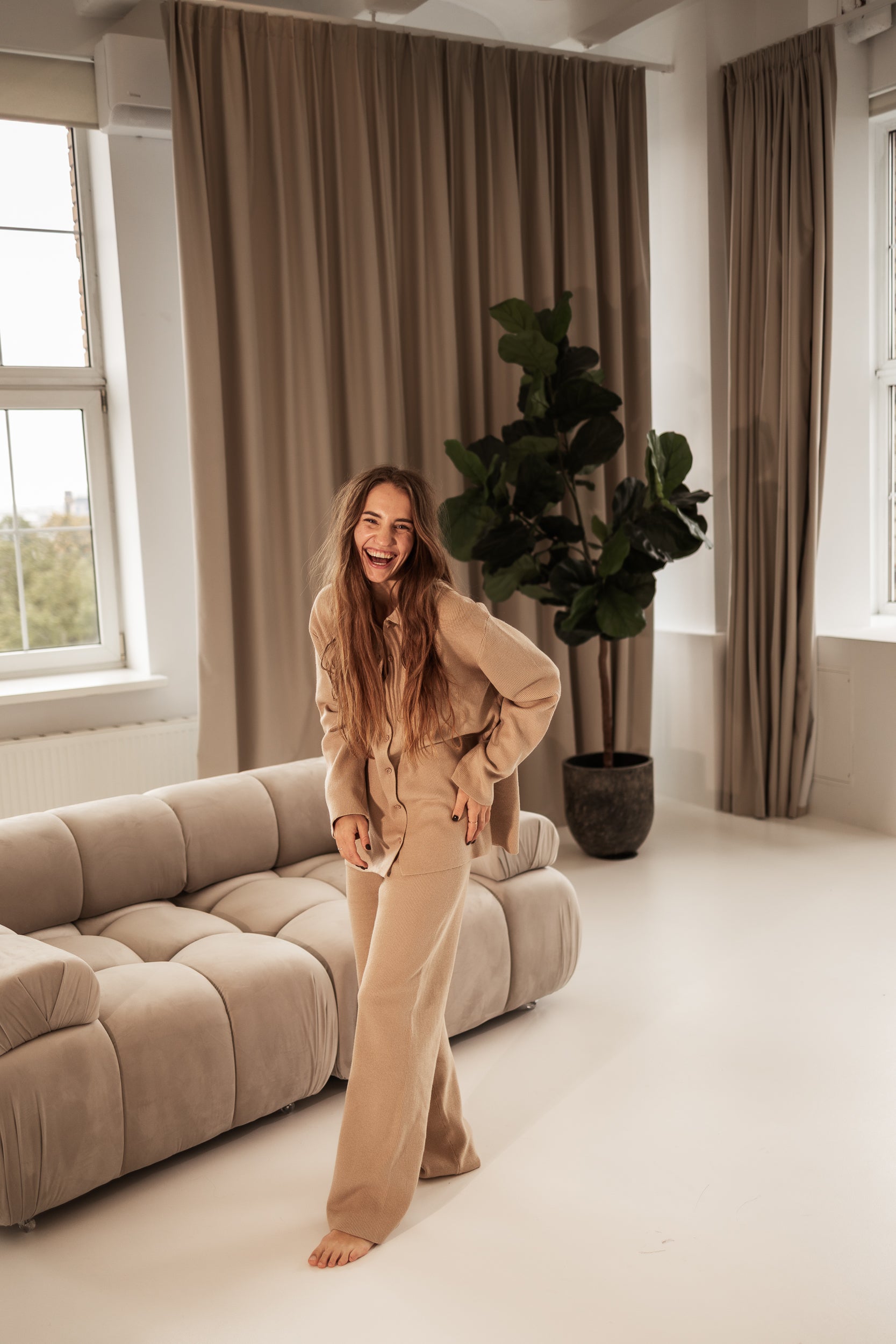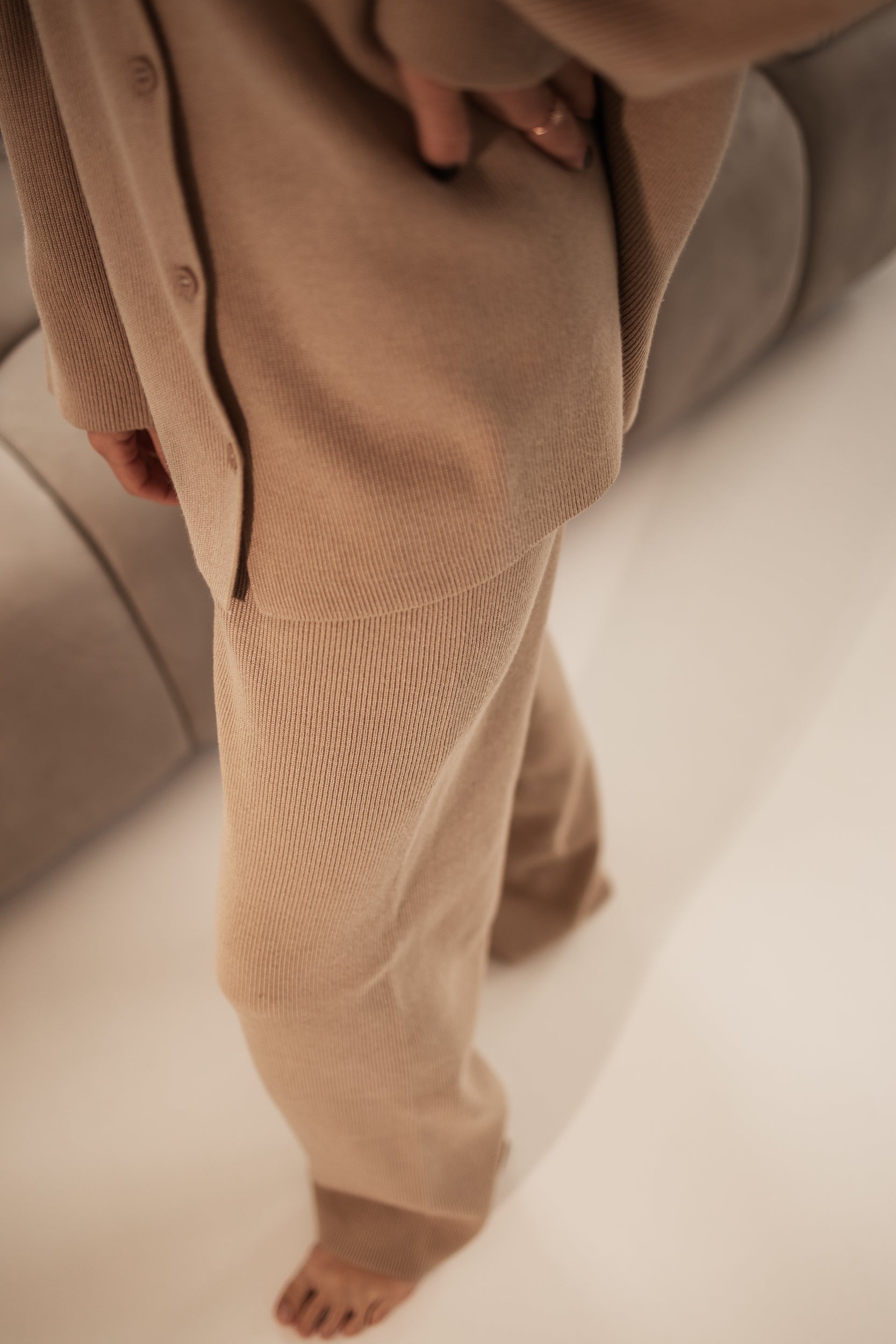 Iepazīsties ar mūsu jauno, pasakaini mīksto brīvā laika adījumu. Bikses ar taisnām starām un augstu, elastīgu vidukli. Pagarināta, brīva piegriezuma jaka ar pogām un taisnām piedurknēm. Izgatavots no pasakaini mīksta, patīkama adījuma materiāla, kurā būs silts, bet ne karsts. Audums neburzās un ir saturīgs. Jaku var viegli kombinēt arī ar citiem ikdienas apģērbiem.