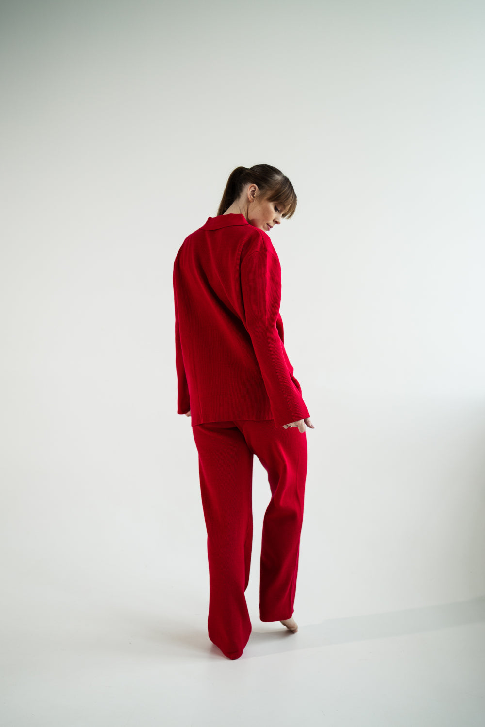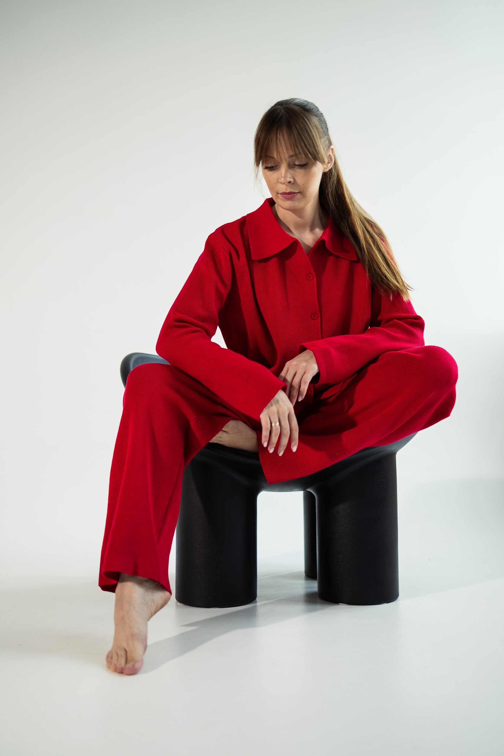 Iepazīsties ar mūsu jauno, pasakaini mīksto brīvā laika adījumu. Bikses ar taisnām starām un augstu, elastīgu vidukli. Pagarināta, brīva piegriezuma jaka ar pogām un taisnām piedurknēm. Izgatavots no pasakaini mīksta, patīkama adījuma materiāla, kurā būs silts, bet ne karsts. Audums neburzās un ir saturīgs. Jaku var viegli kombinēt arī ar citiem ikdienas apģērbiem.