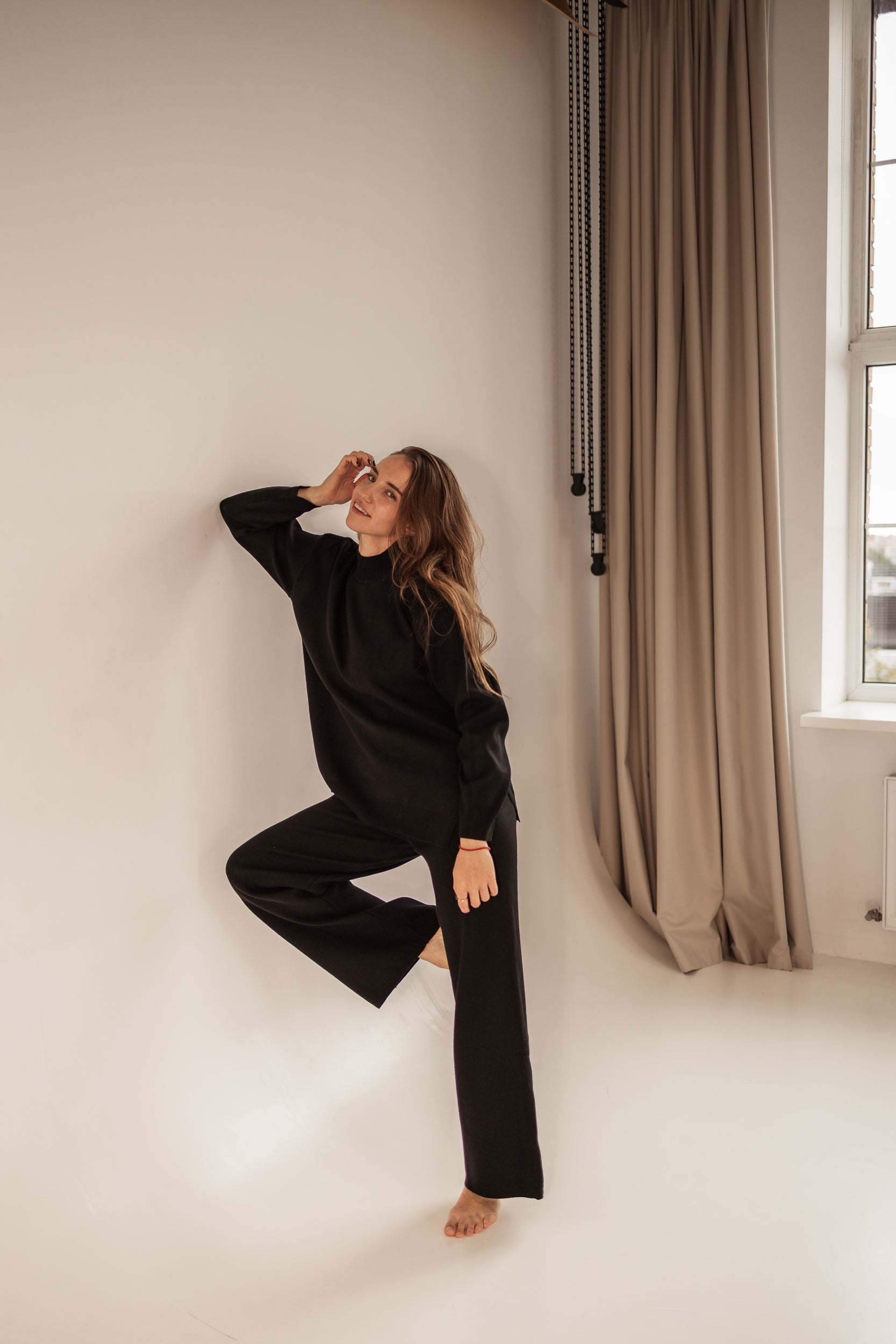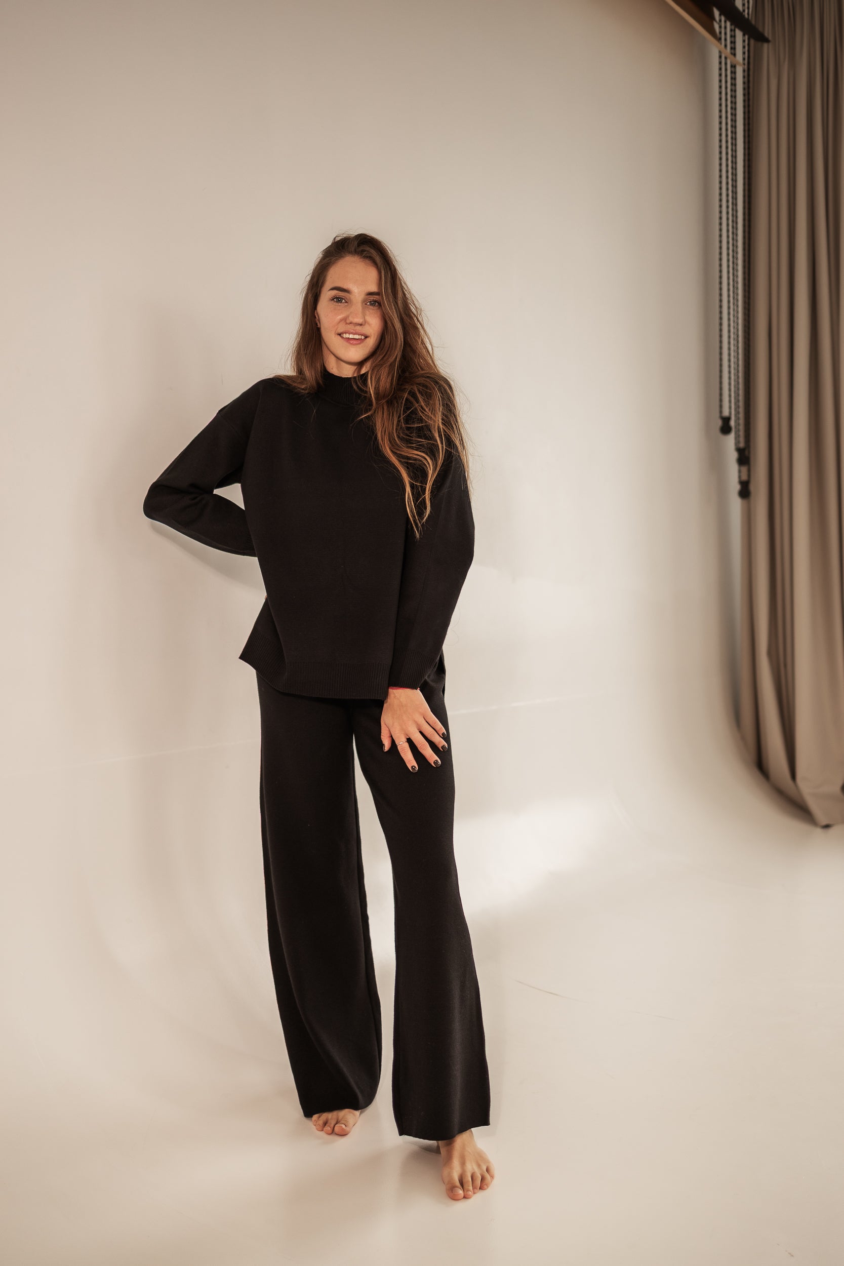 Iepazīsties ar mūsu jauno, pasakaini mīksto brīvā laika lounge tērpu. Bikses ar taisnām starām un augstu, elastīgu vidukli. Nedaudz pagarināts, brīva piegriezuma džemperis ar sāna šķēlumiem. Izgatavots no pasakaini mīksta, patīkama materiāla, kurā būs silts, bet ne karsts. Audums neburzās.